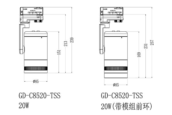 矮空间可变焦轨道射灯